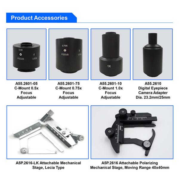 | Polarizer Lens, Bulit-in Bottom Part Of Condenser, Removeable Out of Optical Path | ● | ● | A5P.2610-S |